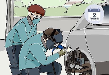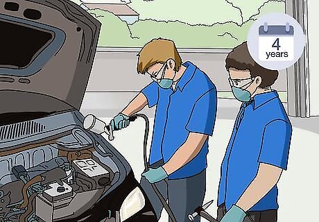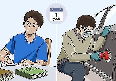 Complete a 4-year apprenticeship to learn the trade. An apprenticeship gives you on-the-job training to prepare you to work on your own. Expect to start out with tasks like helping a more experienced panel beater fix small dents before moving on to tougher repairs. You won’t be able to do repair work on your own until you’re trained. The length of the apprenticeship period can vary depending on where you are in the world. At a minimum, expect jobs to require at least 2 years of professional experience.