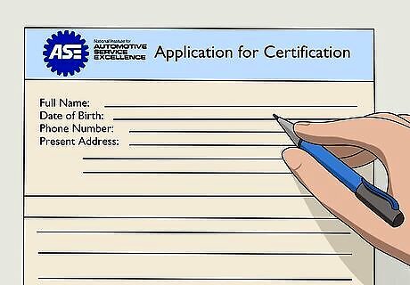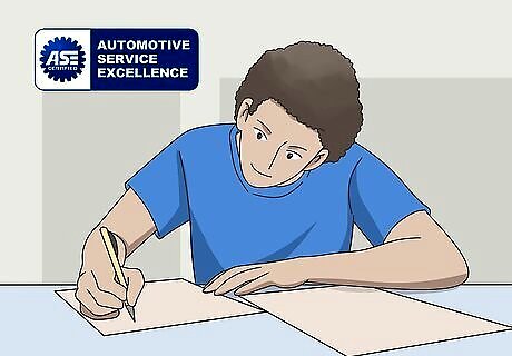 Take a test if it is needed to qualify for certification. Testing organizations like the ASE offer many different types of certification, so choose the one that best applies to your work. ASE certification tests are computer-based and typically consist of 50 to 60 multiple-choice questions. They are meant to measure how much you know about panel beating or another subject the test covers. You can retake the test every 30 days. For example, the B series of tests covers collision repair, including damage analysis, repair, and refinishing. These tests are often good places for a panel beater to start when pursuing certification. In a region like Western Australia, you will have to get a Motor Vehicle Repairer's Certificate. This certificate is required for work and requires you to complete a test similar to the ASE.