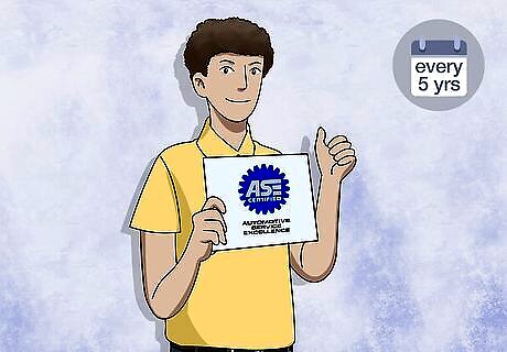 Get recertified every 5 years if it is required. When your certification expires, reactivate it by taking a recertification test. The test is similar to the one you take when you initially get certified. It is used to prove that you have the knowledge of a skilled professional. Be aware of any changes that have happened in automotive technology since you last took a certification test. Recertification is necessary because panel beating changes over time. You may come across new technology or techniques in your work, which can then show up on a certification test. Be sure to read up about any new technology that could impact your score on the recertification test.