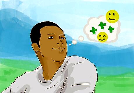 Forgive yourself as well. Part of being a more positive person is feeling better about yourself. In addition to forgiving others, forgive yourself for your own flaws and imperfections. Everyone has past regrets. You may have treated someone poorly, missed an opportunity, or made another regrettable decision or action. Try not to dwell on such things. When thoughts of past regrets creep in, think something along the lines of, "I made the best decision for myself at time."
