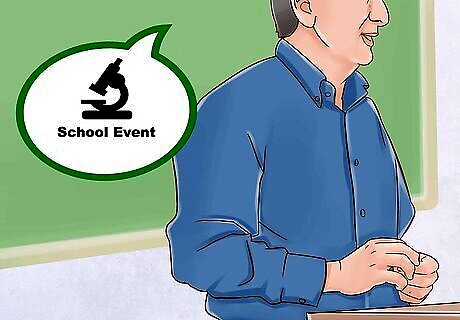 Attend campus events promoted by the professor. If the professor mentions an event on campus that they are hosting or are involved with, make an effort to attend. Sign up for any initiatives put on by the professor. Participate in campus events the professor is a part of to show them you want to be supportive.