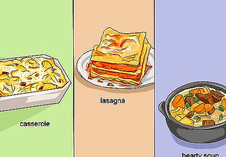Bring a main meal. While cookies, muffins, and snacks are great housewarming gifts, people in need will benefit most from a main meal. This is especially true if children are a part of the family. Bring a main dish so that those eating will be full without needing another meal. For example, bring a casserole, lasagna, or hearty soup.