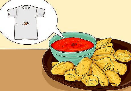 Prepare something easy to eat. Don't bring a meal that's messy or difficult to eat or put together. For example, a DIY taco night might be fun, but it also might include lengthy setup or cleanup afterward. Keep your meals easy to eat and easy to clean up after. Finger foods might be more difficult to keep clean up after, so aim to serve something that requires utensils. If serving food to children, keep it relatively mess-free. For example, if you include sauces, make sure they won't stain clothing.