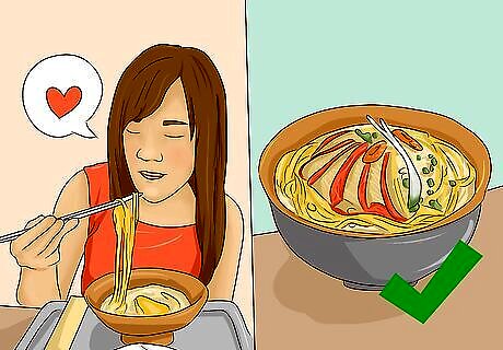 Pick something enjoyable. Your friend may love a certain type of cuisine, like noodles or spicy foods. Show your thoughtfulness by sending them their favorite foods. For example, if they love soup, make (or buy) soup you know they enjoy. If they have a taste for pizza, bring some by. Likewise, stay clear of foods they dislike or may not enjoy. For example, make warming foods on an especially cold night.