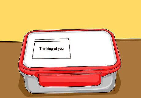 Add a personal note. Along with the meal, say something thoughtful or sweet in a note. This can show how much you care and support them. It might be a note of encouragement, something silly to make them laugh, or a thoughtful line to let them know they are in your thoughts. After the meal is gone, your kindness and thoughtfulness will be remembered. Say something simple, such as “Thinking of you” or, “I hope you recover quickly.”