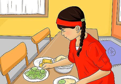 Make it table ready. If you know your friend will be eating the meal once you bring it, drop it off hot and ready. Cook and prepare the meal ahead of time and if needed, heat it briefly when you drop it off at their house. Keep any work your friend or their family has to do minimal. You might want to help get their table or eating area ready. Place utensils, glasses, and plates on the table to minimize meal preparation for your friend.