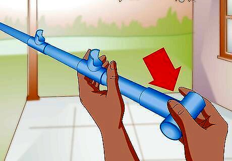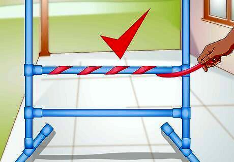 Make the jump bars. While you are cutting your pieces, take the 10-foot (3.1 m) pieces of ¾-inch (1.9 cm) PVC pipe and cut off four 50-inch (127 cm) pieces. An easy way to do this would be to mark and cut off a 20-inch (50.8 cm) piece from each pipe, and then cut the remaining large piece in half to get two 50-inch (127 cm) pieces. You can then use tape to mark the bars or use newspaper and spray paint to make more complicated markings. Ul You should end up with four 50-inch (127 cm) pieces of ¾-inch (1.9 cm) PVC pipe. Depending on how exact your measurements are, you may find that you need to trim a little off the ends of your jump bars to get them to fit properly in the cups. You should not need to take off more than a quarter of an inch (6.35 mm).