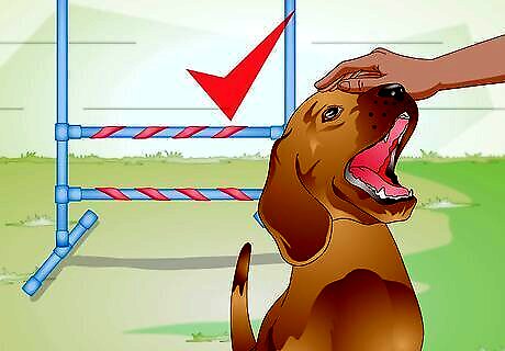 Give the dog praise. It is important that you be positive with your dog during its training. Maintaining a positive tone will help your dog master the agility jump and create a positive association. If you yell at your dog or take a harsh tone, it will become anxious around the jumps and take a longer time to master the trick.