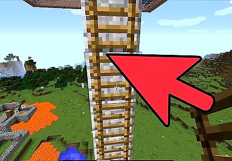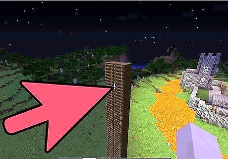 Build up to your sky fortress. Build a tower with ladders up to the height you want your sky fortress to be. The tower here doesn't have to be made of anything fancy, though if you want to keep it, it should probably match the material of your sky fortress. In creative mode, ladders are not necessary. In survival mode, they are the only way to get to the top!