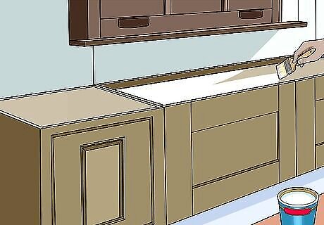 Paint your completed seat base if desired. Brush the bench top, cabinet doors, and surrounding molding with a coat of interior latex primer, then follow that up with 2-3 coats of interior latex paint. Allow each coat to dry completely before applying subsequent coats. When you're done, your new window seat will be one uniform color. Most water-based interior latex paints dry to the touch within an hour, and can be painted over in 4-6. Use strips of painter's tape to protect any nearby areas you don't paint to get on. You may elect not to apply paint if you picked out cabinets and molding with a natural wood finish.