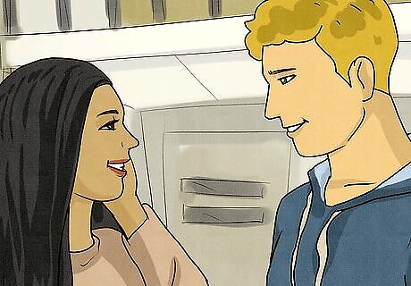 Body language is a huge indicator of confidence. When you interact with others, be sure to keep your head and chin up, stand up straight, and look people in the eyes when you talk to them. Keep your hands out of your pockets and plant your feet in a wide stance. If you’re listening to someone else talk, practice active listening skills by nodding your head and making eye contact.