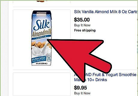 Clarify the type of almond milk for which you are looking. There are sweetened and unsweetened versions of plain almond milk, which will have a distinctive nutty flavor. There are also chocolate and vanilla varieties. If you are drinking almond milk as part of a healthy diet, shop for unsweetened varieties. Sweetened plain, chocolate and vanilla almond milk can have up to 5 tsp. (20 g) of added sugar per serving. Check the sugar content before buying.