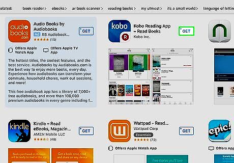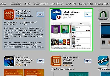 Choose an app to use. There are numerous free apps available, depending on where you want to buy books. You can download as many different apps as you need in order to cover all of the places you want to buy books since different e-bookstores offer different selections of books. Choose the Kindle app if you want to be able to purchase books from Amazon.com. Pick the Nook app if you buy books from Barnes and Noble. Choose the Kobo app if you buy books from kobobooks.com. Pick the iBooks app if you want to buy directly from Apple and be able to purchase books from within the app.