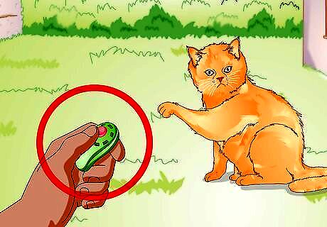 Investigate clicker training. Clickers are all the rage right now. They are little hard plastic boxes that make a clicking noise when pressed upon. They are usually held in your hand for ease of use. If you are considering any type of obedience training a clicker may be useful. They are also fairly cheap so you may just want to purchase one to see if your pet responds to it at all. To train with a clicker you give a click for certain positive behaviors. You then pair this click with praise or another type of positive reinforcement, such as a treat. Cats, dogs, rabbits, pigs, and other pets generally respond well to clicker use. For maximum effectiveness you could pair your clicker with a target stick. This is a light, hand-held stick with a ball at the end. An owner can use it to point to a desired location or item. Cat and bird owners find these useful for agility and behavior training.