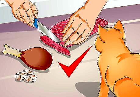Select special food treats. Many training regimens involve positive reinforcement in the form of treating. Buy a treat type that is best suited for your particular pet. Their animal group may do best with certain types of treats and your pet may have personal preferences as well. For example, cats do well with pieces of tuna, diced cooked chicken, or even commercial treats. Make sure to buy treats that are actually treat portions, not meal replacements.
