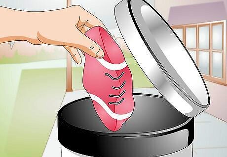 Replace worn down toys. It is also always a good idea to pick up and remove any toys that are well past their prime. Pet training supply manufacturers are not fully regulated and so it is best to not push these products too far. Any toys that are ripped apart could possibly be ingested by your pet.
