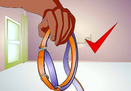 Find an appropriate collar, leash, and/or harness. Cats, dogs, and many other pets will require a collar to aid in training and to provide a measure of security should they get lost. You may also want to consider a leash for your pet if you take regular walks. A harness is best for those pets who like to pull against the lead or who require a little bit of extra guidance. You’ll want to purchase the appropriate size so that all of these items sit snugly, but not tightly, against your pet’s skin. A too tight collar, for example, can cut into the skin of your pet or even choke it. Don’t automatically discount the use of a leash or harness with a non-dog pet. Many people have find it quite fun, for example, to train their cats to walk with a leash.
