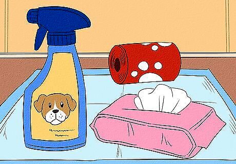 Stock up on cleaning supplies. You will need to accept the fact that your puppy will have accidents. Urine stain and odor remover, puppy wipes, poop pick-up bags, and housebreaking pee pads are some essential items to have in your home when you are with a new puppy.