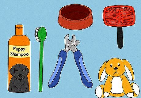 Select a veterinarian. You will need to take your puppy to see a veterinarian soon after you come home, so it is important to contact one before that time. Your puppy should have a full examination to alert you to any potential health problems, as well as receive his vaccinations in a timely manner.