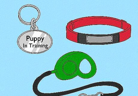 Remember to get a leash, collar, and an ID tag. In many areas, it is required by law that your dog be leashed and collared while outside, so it is essential that you have these on hand when you bring your puppy home. Additionally, your collar gives you a place to affix an ID tag, so that your dog can be returned to you if you ever are separated. A harness collar can be useful for your miniature schnauzer puppy, since it will give you a bit more control over him while out and about, and flexible leashes are convenient as you both learn to walk together. An adjustable collar will grow with your puppy. If you plan to take a lot of walks in the evening, you may want a harness with reflectors or one that is illuminated.