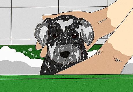 Bathe your miniature schnauzer puppy periodically. Your puppy can be bathed weekly or monthly, as often as you deem necessary. Be sure to use dog shampoo and lukewarm water, followed by a thorough rinse. After a bath, a towel dry and brush will leave your puppy refreshed. Between baths, it is a good idea to rinse your miniature schnauzer puppy’s beard after eating.