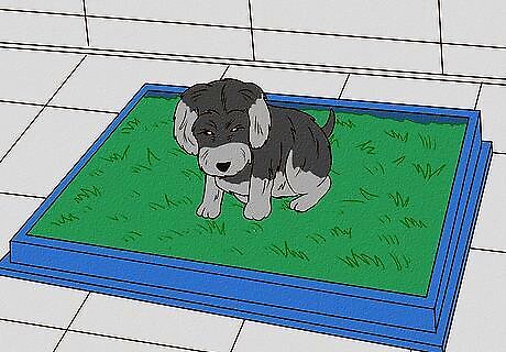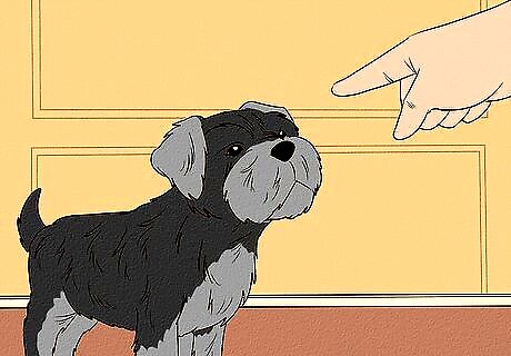 Potty train your puppy. To housebreak your miniature schnauzer puppy, you will need to be consistent and firm in your commands. Choose a potty spot and command that you will use every day. Also, since puppies have small bladders, take your puppy outside each hour for a potty break. Praise your puppy each time he goes in your designated potty spot. Take your puppy out for a break within 30 minutes of eating. If you need to leave your puppy for 3 or more hours at a time, use pee pads to offer a spot for your puppy to relieve himself.