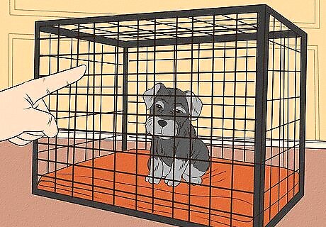 Use a crate to help train your puppy. Introducing a crate while your miniature schnauzer is still a puppy helps your dog get comfortable with being confined. This is useful if he ever needs to be hospitalized or boarded in the future. Additionally, if you put his bed in the crate at first, he will have a sense of security in that confined area that may help him sleep. Be sure to leave the door of the crate open so your dog doesn’t feel trapped while inside.