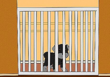 Buy a gate and/or a crate. A baby gate is useful for confining your puppy to certain areas of your home, at least initially. Crates are good for sleeping and keeping your puppy safe while you leave the home for brief periods. Pet owners commonly keep puppies in the kitchen at first and place gates there. Kitchen floors are usually easier to clean than other areas.