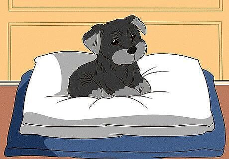 Purchase a dog bed. You can either choose a pillow-type one that will accommodate your puppy while he is small, or you could choose a larger one that will fit him when fully grown as well (between 13 and 15 inches). Providing your miniature schnauzer puppy with his own bed will help you train him that this is his space for sleeping (instead of in your bed or on other furniture). It will be reassuring to your puppy for him to have a space that is exclusively for him.