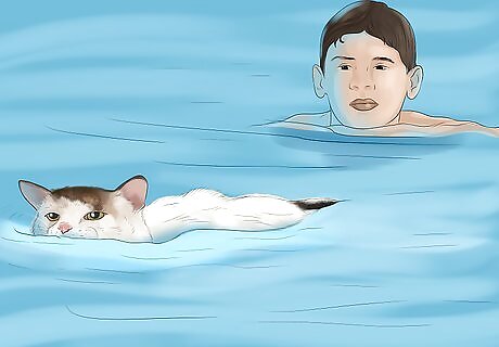 Let your cat play with water. Turkish Vans love water and are known for their superb swimming capabilities. If you have a pond, lake, or pool nearby, give your cat an opportunity to swim. You can also let your cat play with faucets and running water. Never let your cat swim unsupervised. Never let your cat swim in moving water, such as a creek or river.