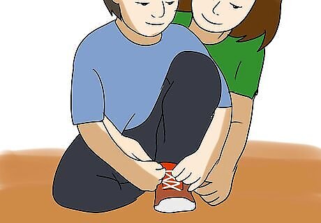 Break actions down into steps. In martial arts programs, they break down every movement in great detail. For example, for a karate punch, you make a fist with your thumb outside and curled so it doesn't stick out, start palm-up by your side, extend your arm and twist at the very end of the movement. If you figure out equally detailed instructions for things like tying your shoes or riding a bike, this makes it a lot easier for the child with dyspraxia to learn how to do those activities.