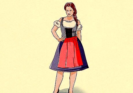 Let female guests come in their best dirndls. Women have their own version of tracht, complete with a three-piece dress called a dirndl. You can buy one online or in costume stores, or make it with clothes you already have. Just be careful how you tie on your apron! Tying a bow on the left means you're single, while putting it on the right indicates that you're married or in a relationship. Oktoberfest Clothes for Women A dirndl: a dress with a tight bodice, skirt, and an apron A traditional hairstyle, like braids