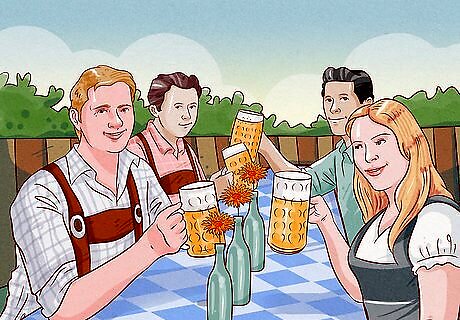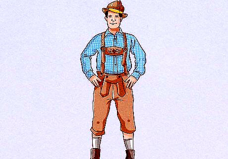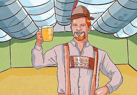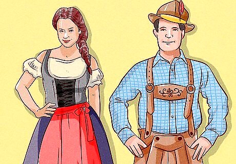 Encourage male guests to wear traditional clothes like lederhosen. Dressing in “tracht,” or traditional German attire, can make your Oktoberfest party feel authentic, festive, and much more fun. For men, this means the classic lederhosen and hat pairing, which you can find online, in costume stores, or around the house for a DIY version! Oktoberfest Clothes for Men: Lederhosen, leather shorts with suspenders A checkered shirt A trachten hat with a gamsbart, or tuft of hair DIY version: a pair of brown shorts and suspenders, a collared, checkered shirt, and tall socks