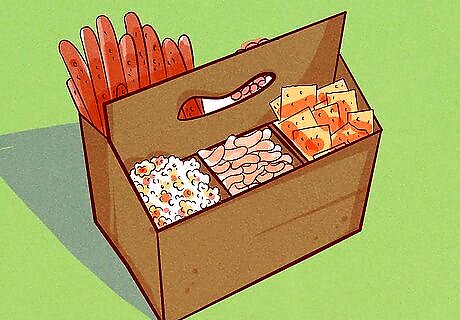 Serve snacks in empty cardboard six-packs. In addition to heavy, filling “main course” items like meats and soft pretzels, you'll also want to set out some light snacks for guests to nibble on throughout the night. Go with salty snacks like popcorn, hard pretzels, nuts, and crackers. Instead of bowls, set them out in empty cardboard six-pack holders for a cute, Oktoberfest-themed alternative.