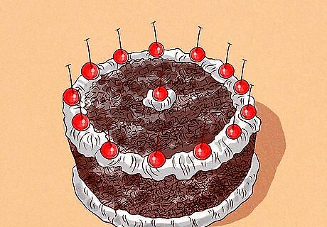 Set out German desserts like Lebkuchen hearts or Black Forest cake. End the night on a sweet note with traditional German desserts. Bake or buy Black Forest cake, a rich chocolate torte mixed with sour cherries and Kirschwasser, a cherry brandy. You can also hand out “Lebkuchen” hearts, heart-shaped gingerbread cookies traditionally served at German Oktoberfest celebrations. Lebkuchen hearts are traditionally decorated with love notes for a sweetheart. You can get your guests involved by making the gingerbread cookies beforehand, then setting up a cookie-decorating station to let everyone write their own messages.