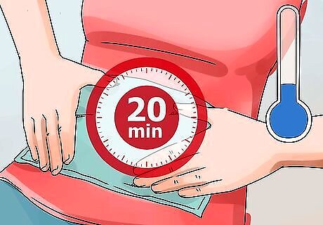 Apply ice. Put an ice pack on your belly and uterus. This might minimize bleeding and could relieve pain and discomfort. Put the ice on your stomach for about 20 minutes. Reapply the ice every 2 to 4 hours when have heavy bleeding or other symptoms. Take off the ice if it gets too cold or your skin is numb.