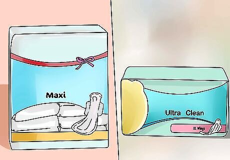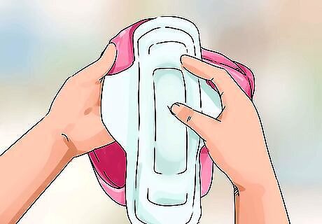 Get the right sized pad. Most women need to change their pads, which are also called maxi pads or sanitary napkins, every few hours. If you have to change your pad more than every 3-4 hours, get a pad made for heavier periods. Explore the different shapes and sizes of pads available for heavier periods. Ask your doctor or pharmacist to suggest a product that can best absorb your flow. Consider getting a pad with “wings.” These pads have extra material that folds over the sides of your underwear to reduce possible leakage.