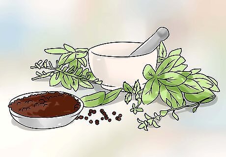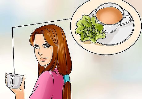 Use herbal remedies. Many herbs have properties that could reduce bleeding. They may also help with hormonal imbalances. Drink lady’s mantle tea to help reduce heavy menstrual flow. Infuse one ounce of dried lady’s mantle leaves in one pint of boiling water and drink it three times a day. Drink 1 milliliter of warm water with 1 to 2 teaspoons of shepherd's purse to constrict blood flow. Use 4-6mg of chasteberry extract in water to balance your hormones and stop a heavy flow. Drink one cup of hot water with three teaspoons powdered cinnamon every thirty minutes to reduce heavy blood flow.