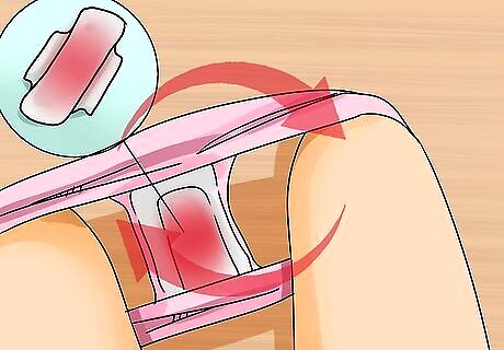 Place the new pad on your underwear. Pull off the backing of your new pad to expose the adhesive. Align the new pad with your underwear and then stick it on firmly. Press down on the length of the pad so that it’s securely in place. Fold over any wings and make sure they’re securely stuck to your underwear. Pull up your underwear and see if the pad is comfortable. If not, rearrange it until you feel good.