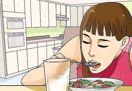 Regulate your period with diet. Make sure you have a healthy diet. This can keep your period regular and may prevent heavy bleeding. Eat foods with protein such as nuts or lean meat, iron rich foods like kale, and dairy like yogurt or cheese for calcium. Eating healthy oils and seeds like olive and flaxseed may also relieve heavy periods. Consider trying the Mediterranean diet, which is a mixture of fruit, vegetables, fish, meat and whole grains. Some studies have shown this can regulate your periods.
