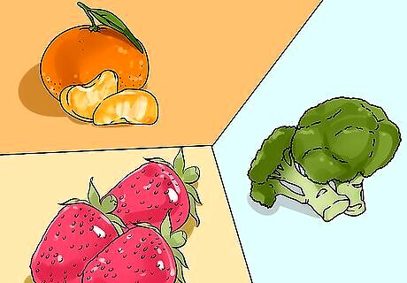 Encourage clotting and prevent anemia with iron and vitamin C. Getting enough iron prevents anemia, which may cause heavy bleeding. Vitamin C can help your body absorb iron. Getting foods containing both vitamins may help control your heavy flow. Vegetables including broccoli, kale, sweet potatoes, and spinach have iron, calcium, and Vitamin C. Fruit including oranges and strawberries are high in Vitamin C. Prunes and dried apricots are good sources of iron.