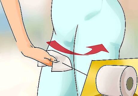 Clean yourself. You may want to clean yourself after you remove the old pad. This can remove excess blood, prevent odor, and may make you feel more comfortable. Wipe yourself with toilet paper. Remember to wipe front to back to avoid getting bacteria in your vagina. Use a moist feminine wipe if you want to clean yourself more thoroughly. Remember not to insert the wipe inside of your vagina.