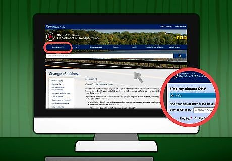Locate the nearest service center of the Department of Transportation. From the home page at www.wisconsindot.gov, select the link to “Online Services” on the top toolbar, and choose “Closest DMV and Wait Times” from the drop down menu that appears. This will take you to a new screen to search for the nearest service office. On the search screen, select “Driver’s License” from the drop down menu of service categories. Search by either zip code or the name of your city or town. Select “Next” after entering the information. Use the map that appears to find the nearest service center. Your location will appear on the map as a blue dot, and nearby service centers will show up as green dots. The nearest offices, with their addresses and telephone numbers, will appear below the map. You will also see the current wait time for each office.