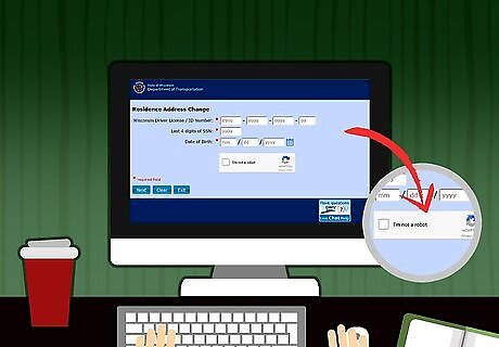 Provide your personal information to begin the change process. You will be prompted to enter your Wisconsin driver’s license number, the last four digits of your social security number, and your date of birth, in order to gain access to your records. When you are ready to proceed, click on the “I’m not a robot” box as a security measure, and follow the instructions. Then choose “Next” at the bottom of the screen.