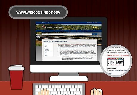 Visit the website for the Wisconsin Department of Transportation. You can find their home page at www.wisconsindot.gov. From the home page, select the link to “Online Services” on the top toolbar, and choose “Change Address” from the drop down menu that appears. This will take you to a new screen for the online services of the DOT. Click on the image of the license plate that says “Start Now” at the bottom of the screen when you are ready to proceed.