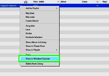 Right-click on the 30-second song and select “Show in Windows Explorer.” A new Windows Explorer window will open and display your song. Select “Show in Finder” if using iTunes on Mac OS X.