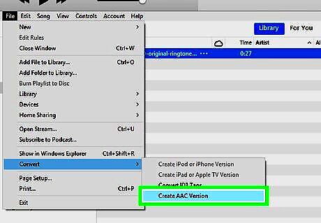 Click on “New Version,” then select “Create AAC version.” iTunes will make a copy of your track using the time parameters you entered.