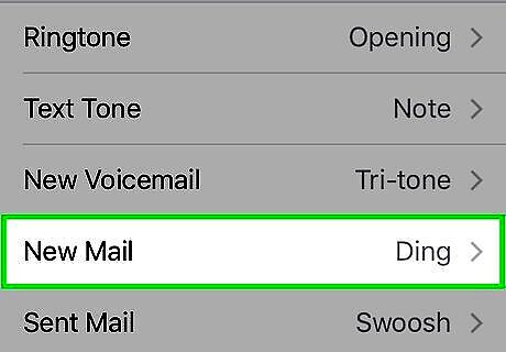 Tap on “New Mail.” A list of default ringtones for email notifications will display on-screen.