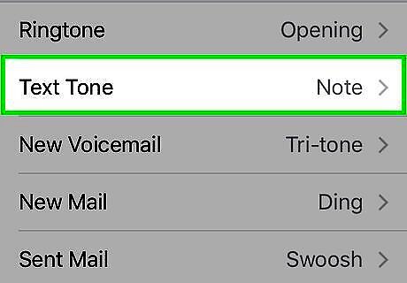 Tap on “Text Tone.” A list of default ringtones for text messages will display on-screen.