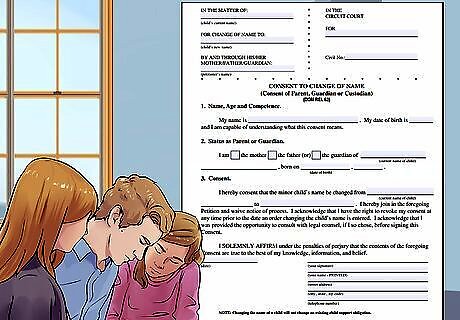 File Consent form. If the other parent of the child whose name will be changed agrees to the name change, you must file a consent form to this effect. You will have to give this form to the court at your hearing.